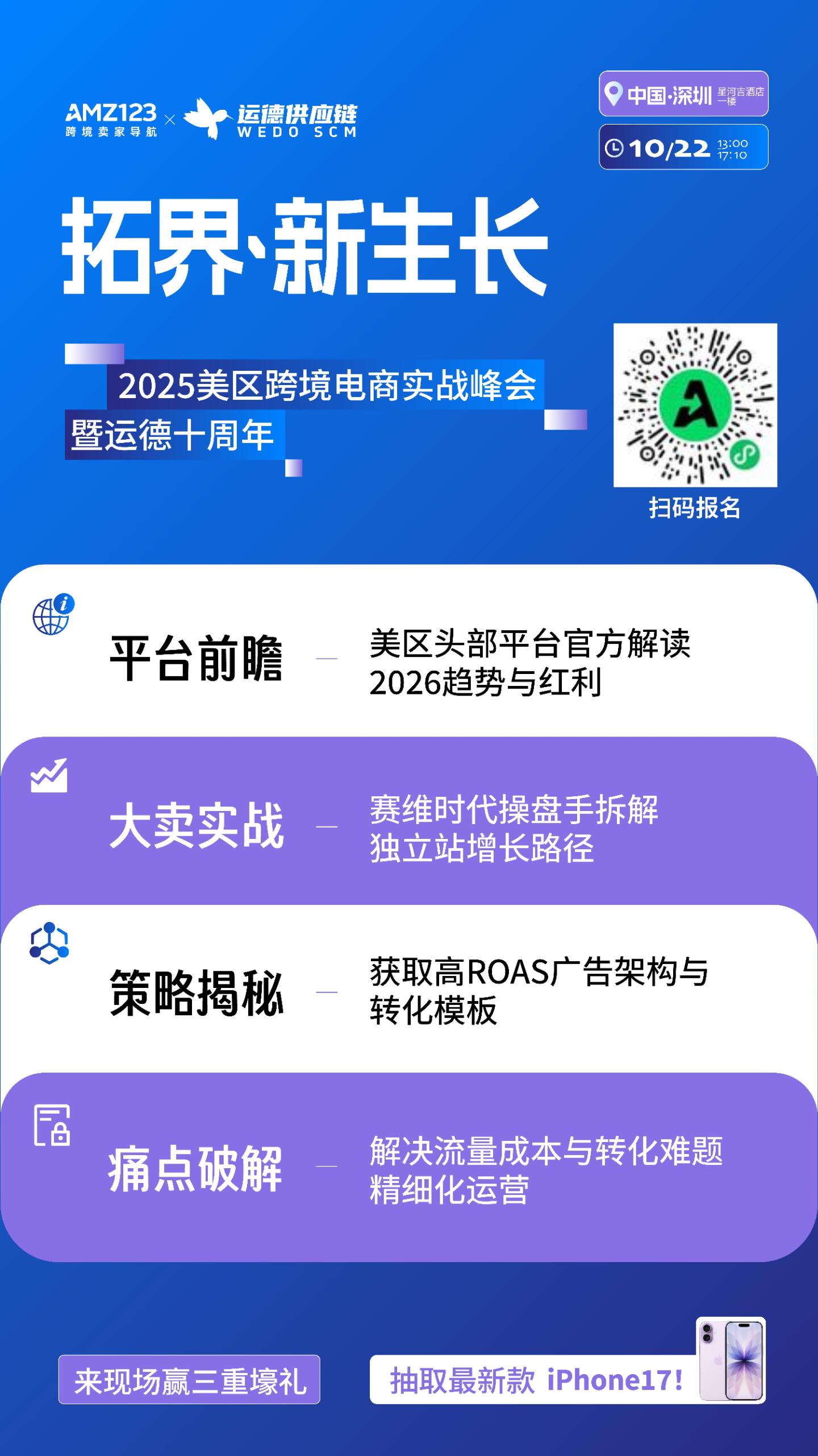 由运德供应链联合AMZ123共同举办的“2025美区跨境电商实战峰会暨运德十周年”自官宣以来,受到美区卖家的持续关注。峰会活动的神秘嘉宾与福利内容正式揭晓!锁定10月22日,深圳·星河吉酒店,运德邀您共赴一场美区跨境电商的行业盛会。